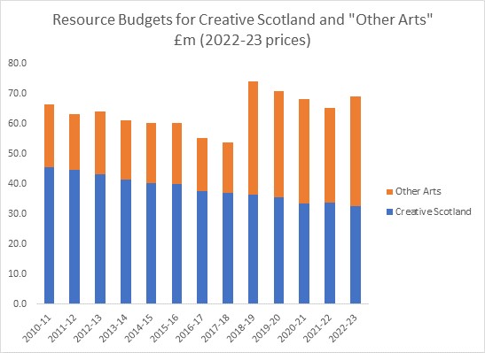 Figure 1: Creative Scotland and Other Arts Budget Line (Level 3), 2010-11 to 2022-23, real terms (2022-23 prices)
