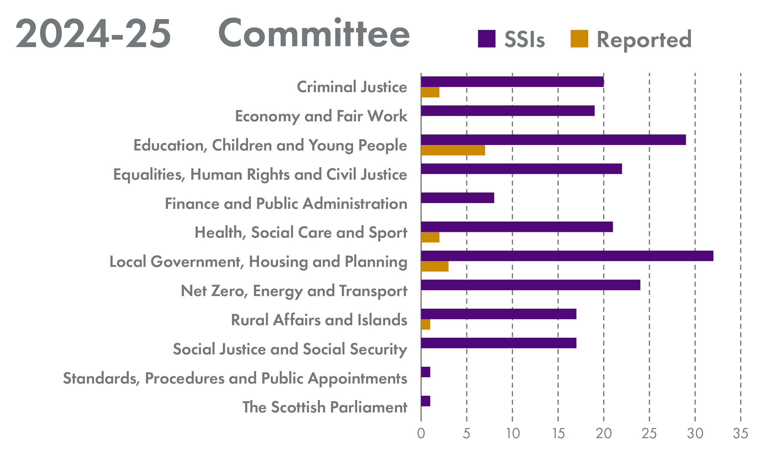 The policy issues raised by SSIs are considered separately by the Scottish Parliament's various subject committees such as the Criminal Justice Committee, the Net Zero, Energy and Transport Committee and the Rural Affairs and Islands Committee. These are known as the "lead committees".